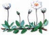 grandes, solitarias, con 8 petalos y estambres amarillos.