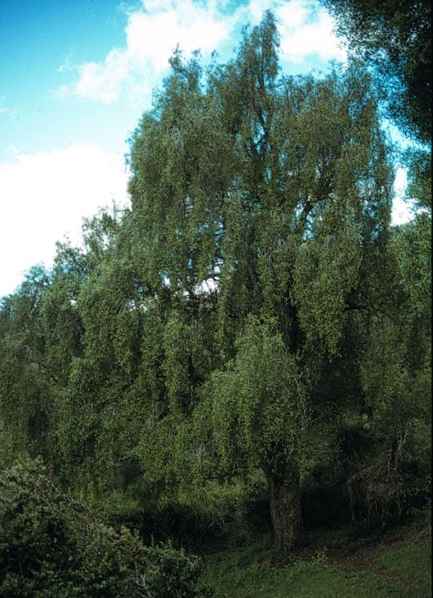 altura. Sus ramas son delgadas, largas y colgantes. Sus hojas son